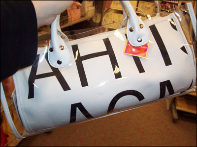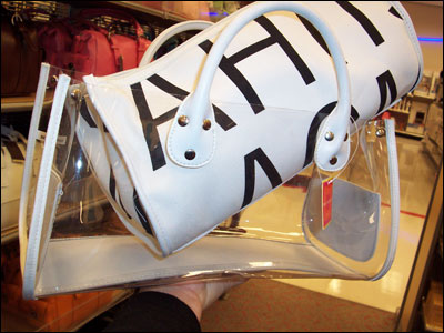 In this time of post-war, nothing screams, "I am a big fat terrorist!" like furtively photographing the goods ... even if those goods are Betsey Johnson hats and scarves. People in black smocks will maybe come and question you, and you will have to look at them with a totally straight face and say you're taking pictures for your imaginary sister, who is in the hospital with a rare viral disorder, possibly the Yarn Flu, and nothing will make her well except a hand-knitted accessory from Bloomies. And if you sniffle a little, and look sweet and innocent, and ask where the Estee Lauder counter is, you will have fought the law BUT THE LAW WILL NOT WIN.